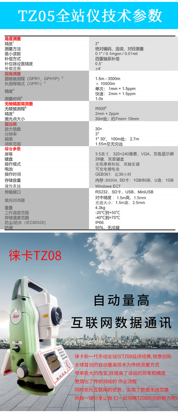 首頁 > 徠卡全站儀 > 進(jìn)口徠卡TZ05/TZ08/TZ12全站儀